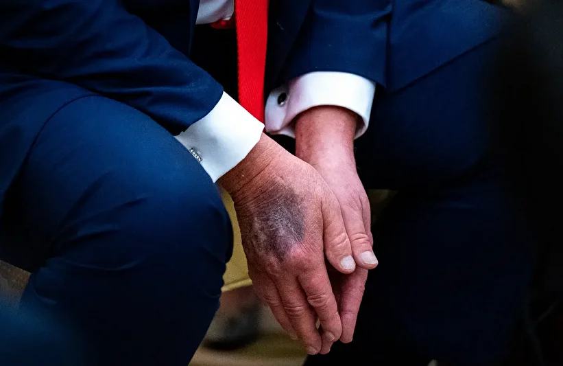 Haberlerde, Trump’ın, ek olarak sol elinin arkasında da renk değişimi veya hafif morluklar olduğunun görüldüğü vurgulanmıştı.
