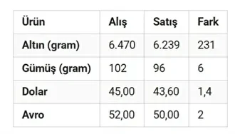 * Bazı özel fnans kuruluşlarında se alış ve satışlarda altının gramında 40 TL, gümüşte se gramda 0,8 TL, dövzde se 0,6 TL gb düşük farklar uygulanıyor