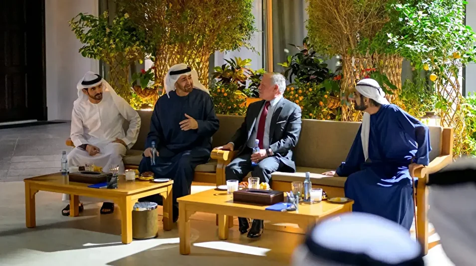 İran’ın ABD üslerini gerekçe göstererek füze saldırılarında bulunduğu Birleşik Arap Emirlikleri’nin Devlet Başkanı Muhammed bin Zayid Al Nahyan, gerilimlere ilişkin atılacak adımları görüşmek için Dubai’de Ürdün Kralı 2. Abdullah’ı ağırladı. İki liderin Ramazan ayında, gündüz vakti çekildiği belirtilen pozları sosyal medyada tepkilere neden oldu.