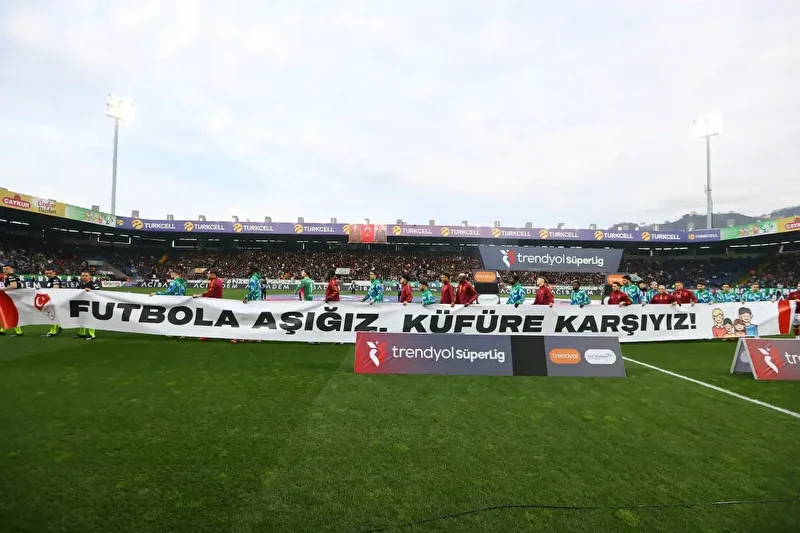 Her iki takım oyuncuları sahaya “Futbola aşığız, küfüre karşıyız” pankartıyla çıktı.
