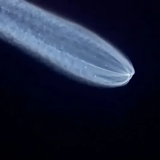 Fırlatma sırasında roketin üst atmosferde bıraktığı egzoz gazları, güneş ışığını yansıtarak parlak ve dağınık bir bulut görüntüsü oluşturabiliyor. Bu olay özellikle gün doğumu veya gün batımı saatlerinde daha belirgin hale geliyor. Halk arasında “jellyfish cloud” (denizanası bulutu) olarak adlandırılan bu görüntü, aslında roket gazlarının ışıkla etkileşimi sonucu ortaya çıkan atmosferik bir optik etkidir.