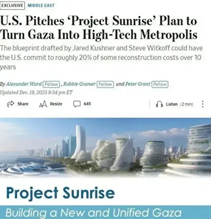 Gazze’de ateşkes müzakereleri devam ederken, ABD kanadından bölgenin geleceğine dair bir plan sızdı. Donald Trump’ın damadı Jared Kushner ve ekibinin hazırladığı iddia edilen “Sunrise” (Gündoğumu) projesi, Gazze Şeridi’ni lüks turizm ve teknoloji merkezi haline getirmeyi hedefleyen 112 milyar dolarlık bir yol haritası sunuyor.