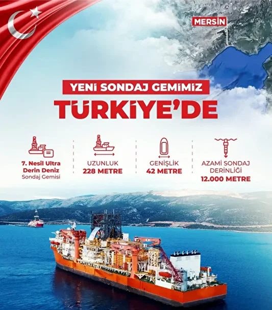 Türkiye’nin enerji filosuna dahil ettiği 6’ncı sondaj gemisi Mersin’e ulaştı.