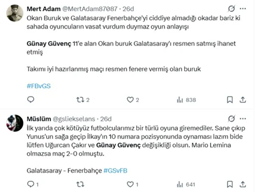 Sezon başından itibaren Uğurcan Çakır’ı ilk 11’de oynatan Buruk, eleştirilerin odak noktası oldu. Bazı taraftarlar, Okan Buruk’un bu tercihi nedeniyle Galatasaray’a ihanet ettiğini belirtti.