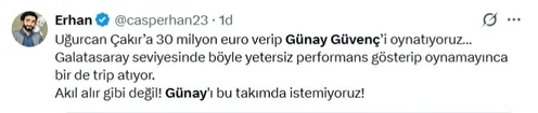 Sosyal medyada kaleci Günay Güvenç tercihini beğenmeyen Galatasaraylı taraftarlar, yenilen iki golde de tecrübeli file bekçisini hatalı buldu.