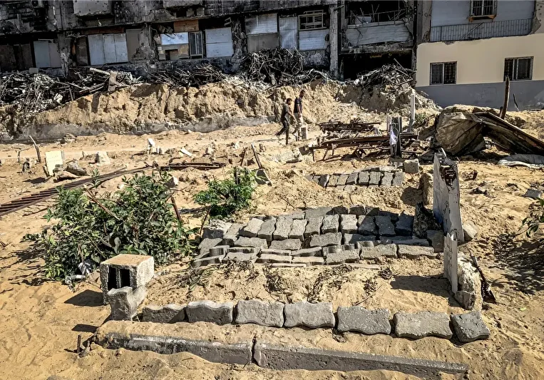 İsrail ordusunun Gazze’ye düzenlediği saldırılarda hayatını kaybeden Filistinliler, mezarlık bulunmaması ve güvenlik koşullarının elverişsiz olması nedeniyle Gazze Şeridi’nin kuzeyindeki Şifa Hastanesi’nin avlusuna toplu mezara defnediliyor.