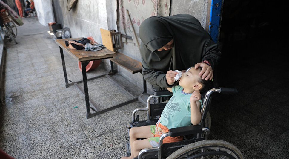 Geçirdiği beyin atrofisi nedeniyle felç olan küçük kız, engelli bireylere hizmet veren merkezin İsrail saldırıları sonucu kapalı olması sebebiyle uzun süredir fizik tedavi alamıyor.