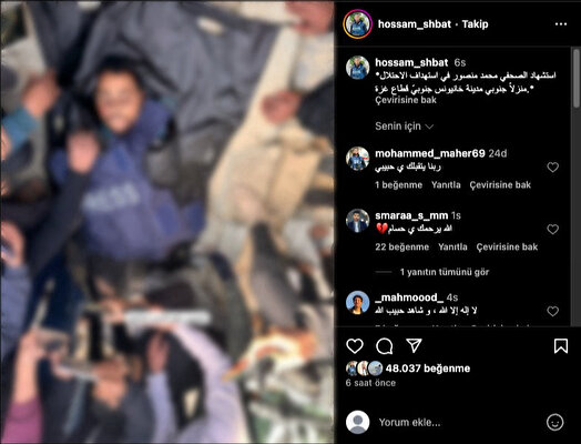 Katledilen Gazeteci Hüsam Şabat, şehit edilmeden önce meslektaşı Muhammed Mansur’u paylaşmıştı. Şabat paylaşımında, “İşgalciler Gazze Şeridi’nin güneyindeki Han Yunus şehrinin güneyindeki bir evi hedef alarak Gazeteci Muhammed Mansur’un şehit etti.” ifadelerini kullanmıştı.
