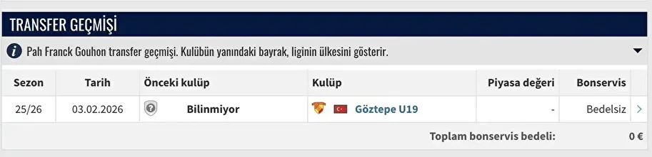 Ara transfer döneminin son gününde Göztepe’den dikkat çeken bir hamle geldi. Sarı-kırmızılı ekip, Pah Franck Gouhon ile sözleşme imzaladı. Ancak genç oyuncunun önceki kulübü ve futbol geçmişi hakkında resmi bir bilgi paylaşılmadı.