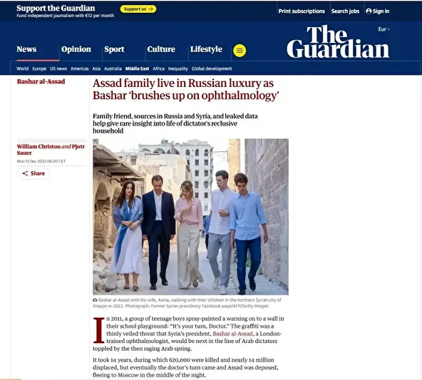 Suriye’deki rejimi devrildikten bir yıl sonra, Esed ailesinin Moskova ve Birleşik Arap Emirlikleri’nde izole, sakin ve lüks bir hayat sürdüğü vurgulanan haberde, aileye yakın iki kaynağın Esed ailesinin muhtemelen 2014 yılında Kiev’den kaçan ve bu bölgede yaşadığına inanılan eski Ukrayna Devlet Başkanı Viktor Yanukoviç gibi isimlerle Moskova’nın elit kesiminin yaşadığı prestijli Rublyovka’da ikamet ettiğini söylediği aktarıldı.