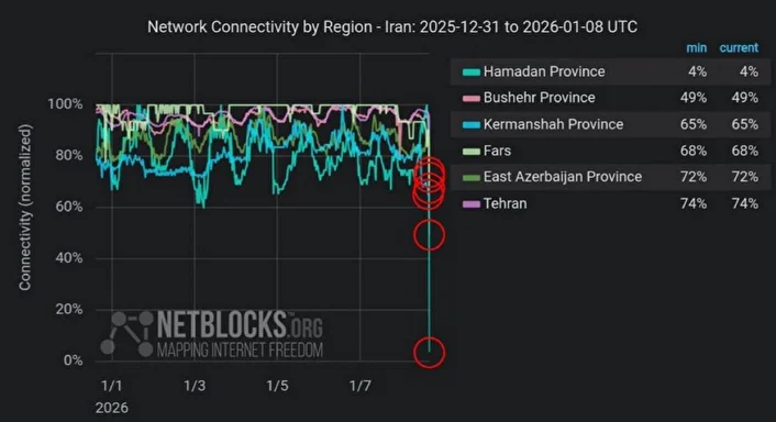 İranlı Öğrenciler Haber Ajansı (ISNA), sosyal medyada paylaşılan değerlendirmeler ve kullanıcı geri bildirimlerine göre, internet erişiminde kesinti ve belirgin yavaşlamalar gözlemlendiğini duyurdu.