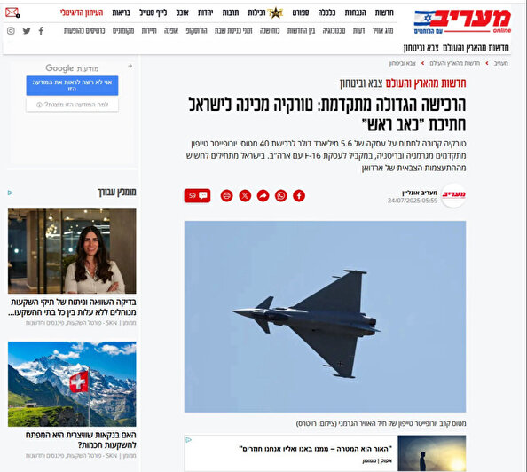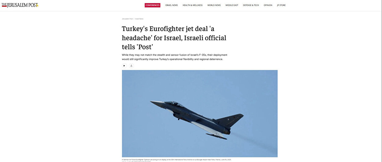 Türkiye’nin son Eurofighter Typhoon savaş uçağı alımı anlaşması, İsrail basınında geniş yankı buldu.