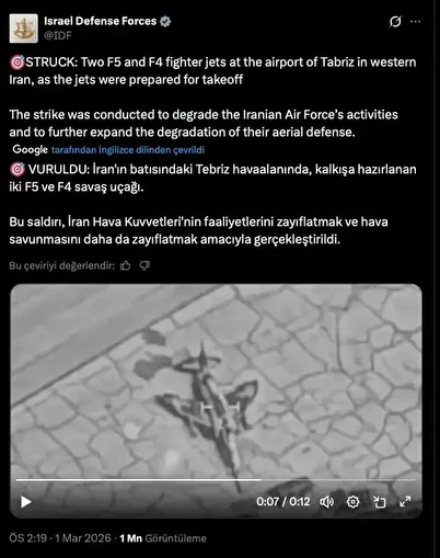 IDF’nin söz konusu görüntüleri bir de gerçek bir hava aracı imha edilmiş gibi servis etti. Sosyal medyada hızla yayılan görüntüler kısa sürede 1 milyonun üzerinde görüntülenmeye ulaştı.