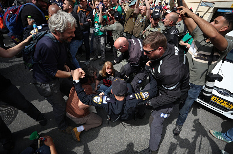 İsrail polisi, bazı göstericilere müdahale etti.
