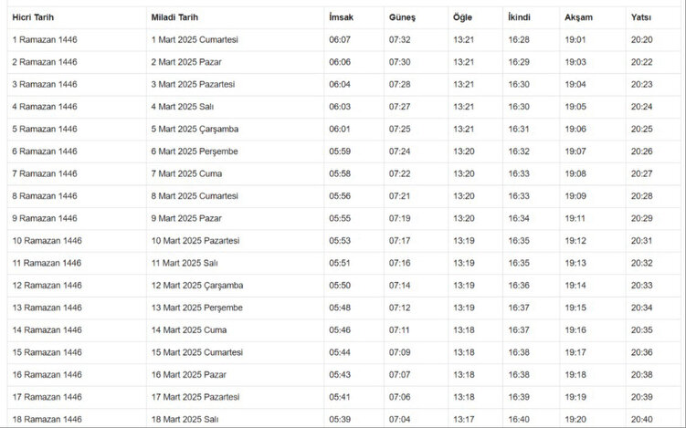 Diyanet İşleri Başkanlığı’nın resmi internet adresinde (www.diyanet.gov.tr) yer alan bilgilere göre, İstanbul’da bugün (11 Mart 2025) sahur vakti saat 05.51’de.
