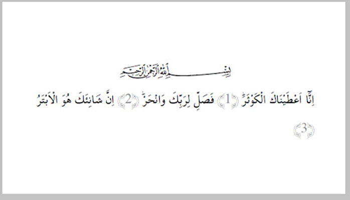 İnna a’taynakelkevser. Fesalli lirabbike venhar. İnne şanieke hüvel’ebter.