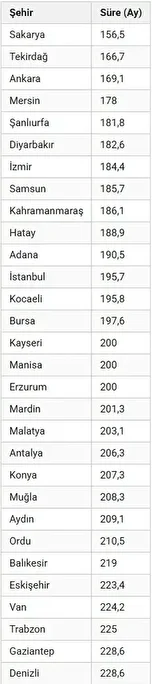 Başkent Ankara, 169,1 aylık amortisman ile 3 büyük il arasında zirvede yer alıyor. İzmir ise 184,4 ay ile ikinci sırada konumlanıyor.