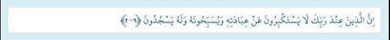 Araf Suresi 206. ayet Türkçe meali : Rabbinin katında bulunanlar bile O’na kulluk etmek hususunda kibre kapılmazlar, O’nu tesbih ederler ve yalnız O’na secde ederler.