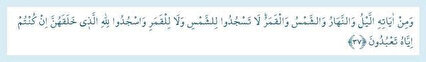 Fussilet Suresi 37. Ayet Türkçe meali : Gece ve gündüz, güneş ve ay O’nun işaretlerindendir. Eğer gerçekten Allah’a tapıyorsanız güneşe de aya da secde etmeyin, onları yaratan Allah’a secde edin.