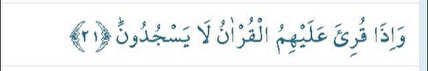 İnşikak Suresi 21. Ayet Türkçe meali : Kendilerine Kur’an okunduğu zaman saygıyla yere kapanmıyorlar.