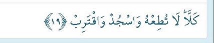Alak Sures 19. ayeti Türkçe meali: Sakın onun isteğine uyma! Secdeye kapan ve Allah’a yakınlaş.