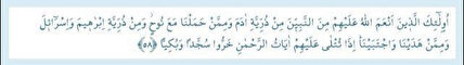 Meryem Suresi 58. Ayet Türkçe meali: İşte bunlar, Allah’ın kendilerine lütuflarda bulunduğu, Âdem’in soyundan gelen peygamberler; Nûh ile birlikte (gemide) taşıdıklarımız, İbrâhim ve İsrâil’in (Ya’kub) soyundan gelenler ve doğruya ulaştırdığımız ve seçkin kıldığımız kimselerden olup, kendilerine Rahmân’ın âyetleri okunduğunda ağlayarak ve secde ederek yere kapanırlar.