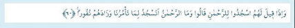 Furkan Suresi 60. Ayet Türkçe meali : Onlara, “Rahmân’a secde edin” denildiğinde, “Rahmân da neymiş! Biz, senin istediğin şeye secde eder miyiz?” derler ve bu istek onları haktan daha da uzaklaştırır.