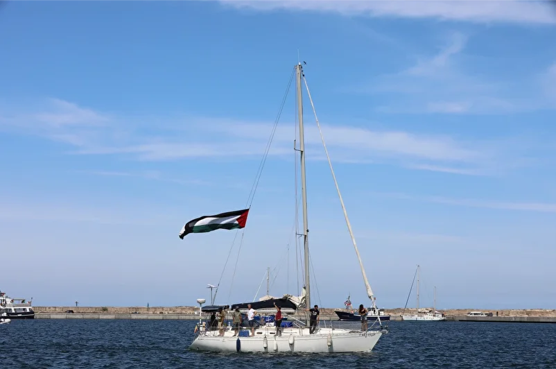 Gemiler hareket ederken limanı dolduran kalabalık, ellerinde Filistin bayraklarıyla “Gazze’ye özgürlük”, “Direniş kazanacak” ve “Kahrolsun İsrail” sloganları attı.