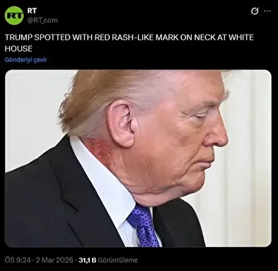 Burada İran’a saldırılara ilişkin de bilgi veren Trump’ın boynundaki kırmızı iz dikkat çekti.