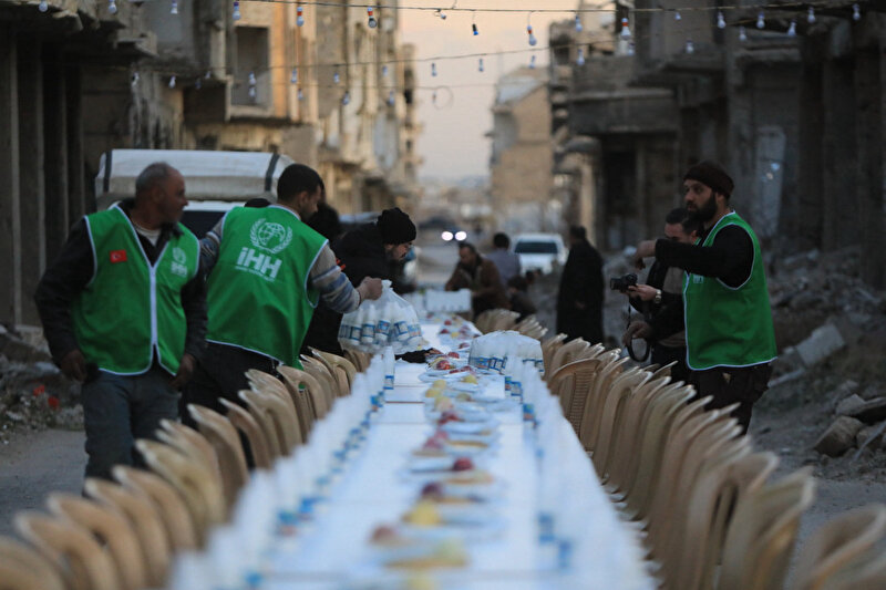 İHH İnsani Yardım Vakfı tarafından Şam’da kurulan iftar sofrası