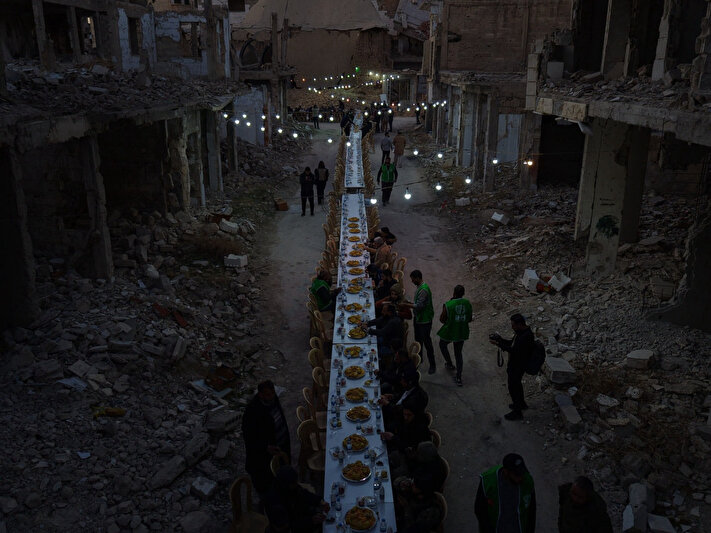 Devrik Baas rejiminin yerle bir ettiği Şam’da, kurtuluşun ardından ilk toplu iftar verildi. İHH İnsani Yardım Vakfı tarafından Ramazan’ın ilk günü başketin Cobar Mahallesi’nde organize edilen iftar programına 500 kişi katıldı. Saldırılar sonucu yıkılan ve kullanılamaz hale gelen binaların arasına kurulan iftar sofrası havadan görüntülendi.