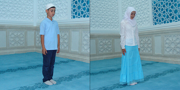 Erkekler, sağ elin avucu, sol elin üzerinde ve sağ elin baş ve küçük parmakları sol elin bileğini kavramış olarak ellerini göbek altında bağlarlar.Kadınlar, sağ el sol elin üzerinde olacak şekilde ellerini göğüs üstüne koyarlar. Erkeklerde olduğu gibi sağ elin parmakları ile sol elin bileğini kavramazlar.