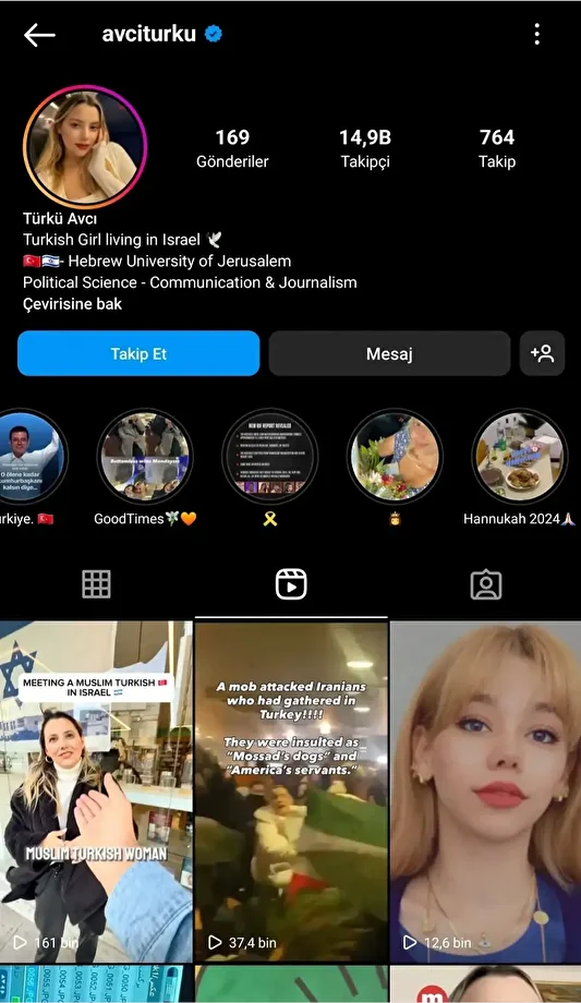 İsrail’de üniversite eğitimi aldığı belirtilen Türkü Avcı ise röportajda, Müslüman ve Türk olduğunu söylemesine rağmen kendisini “Siyonist” olarak tanımladı. Bu ifade, İslam dünyasında Filistin meselesinin taşıdığı anlam düşünüldüğünde büyük tepkiyle karşılandı. Avcı’nın ayrıca, Türkiye’de İsrail’e yönelik tepkileri ‘İslamcı propaganda’ olarak nitelendirmesi de kamuoyunda milletin vicdanını hedef alan bir yaklaşım olarak değerlendirildi.