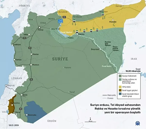Cumhurbaşkanı Şara’nın taraflar arasında kabul edildiğini duyurduğu anlaşma, örgütün Fırat Nehri’nin doğusundaki Rakka ve Deyrizor illerinden tümüyle çekilmesi, Haseke’deki kamu kurumlarının devlete devredilmesi, tüm sınır kapıları ve enerji kaynaklarının merkezi otoritenin elinde olması ile YPG/SDG unsurlarının bireysel olarak güvenlik güçlerine entegrasyonu gibi hükümler içeriyor.