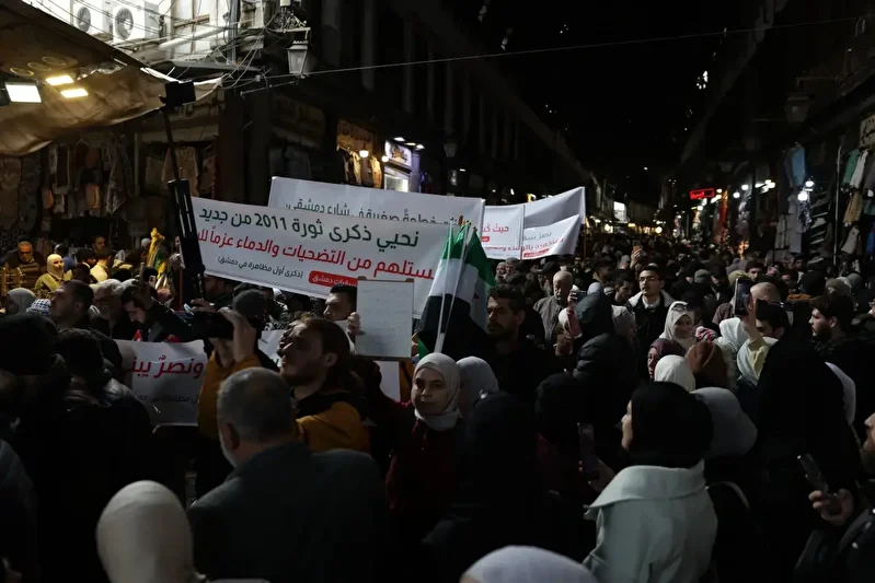 Suriye’de 2011 yılında başlayan halk hareketinin yıldönümünde, başkent Şam’da ilk protestoların gerçekleştirildiği güzergahta anma yürüyüşü düzenlendi.