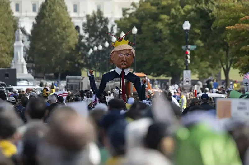 İlki haziran ayında düzenlenen ve Trump’ın ülkeyi daha “militer ve otokratik” bir yöne götürdüğünü savunan “Krallara Hayır” protestolarının ikincisi ABD genelinde yapıldı.