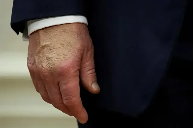 ABD Başkanı Trump’ın elindeki morluk, Beyaz Saray tarafından makyajla gizlenmeye çalışsa da kamuoyunun gözünden kaçmadı.