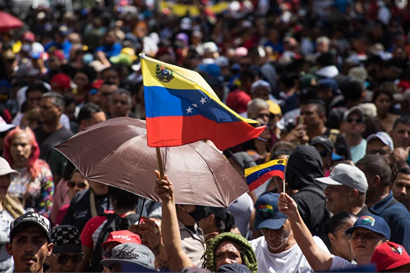 Venezuela’nın başkenti Karakas’ta binlerce kişi, ABD’nin askeri müdahaleyle kaçırdığı Venezuela Devlet Başkanı Nicolas Maduro’ya destek için sokaklara döküldü.