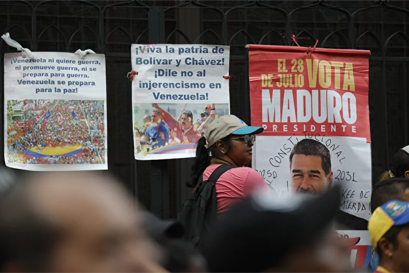 Maduro destekçileri, ABD’nin askeri müdahalesine ve başkanlarının alıkonulmasına karşı pankartlar taşıyarak,