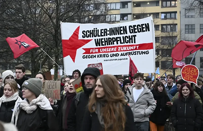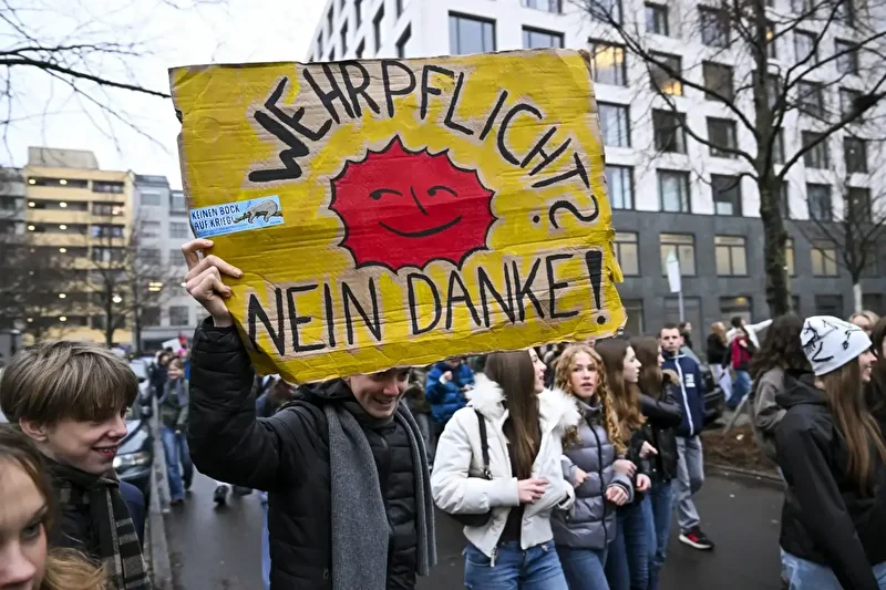Ukrayna savaşı sonrası Rusya ile sık sık atışan Almanya’da, asker sayısını artırmayı hedefleyen yasa tasarısı, Federal Mecliste kabul edildi. Alman öğrenciler, askerlik yasa tasarısını protesto için sokağa döküldü. “Zorunlu askerliğe karşı okul grevi” sloganlarıyla örgütlenen Alman gençler, “Cepheye siz gidin”, “Kim savaşa gitmek istiyor?” ve “Orduya katılmak benim yapacaklarım listesinde yer almıyor” şeklinde dövizler taşıdı.